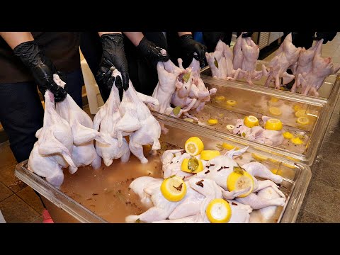 겉바속촉 끝판왕! 줄서서 먹는 능이버섯 장작구이 통닭, 자가제면 메밀 막국수 / oak firewood roasting chicken / korean street food