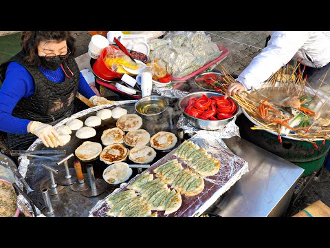 오픈전부터 기다리는 역대급 할머니 호떡 압도적인 초대형 철판에 만드는 씨앗 호떡, 납작만두, 어묵 / Korean Sweet Pancake / korean street food