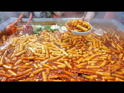 100인분씩 만드는! 초대형 철판 떡볶이, 튀김, 김밥, 어묵 대량 생산 현장 / Korean spicy rice cake Tteokbokki / korean street food