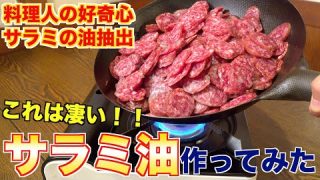 サラミを煮込んで油を抽出してみた!【サラミ油】 youtubeチャンネルホルモンしま田
